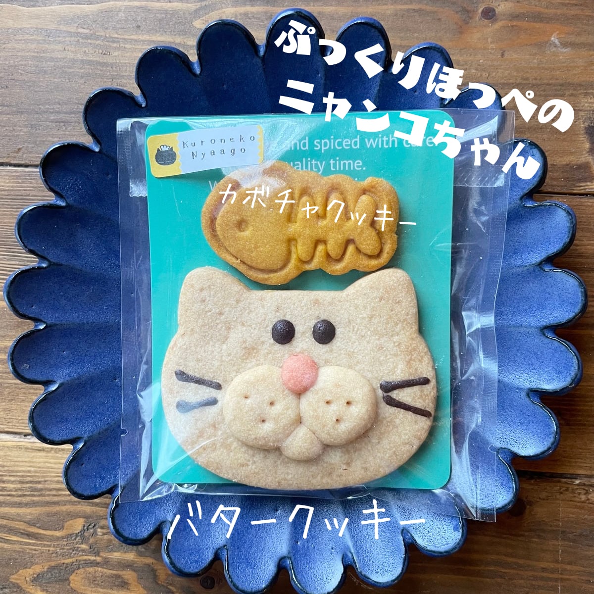 ☆ぷっくりほっぺのニャンコちゃんクッキー2枚
